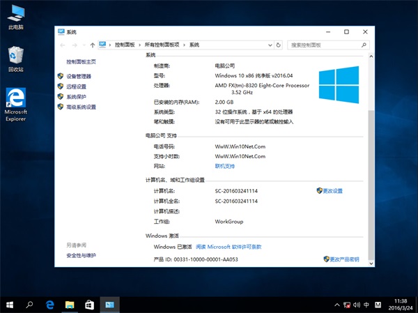1、源安装盘采用微软官方最新发布的稳定版Windows10(x86) - DVD (Chinese-Simplified) 专业版操作系统10586.164,原