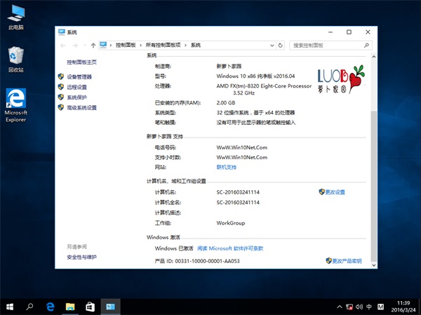 萝卜家园 Ghost Win10 X32 纯净版 2016.04