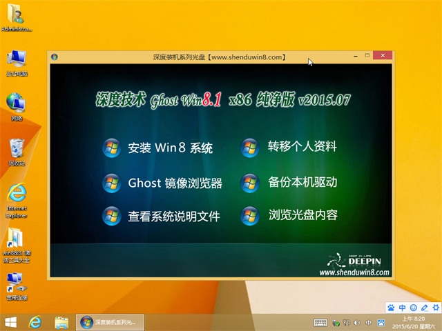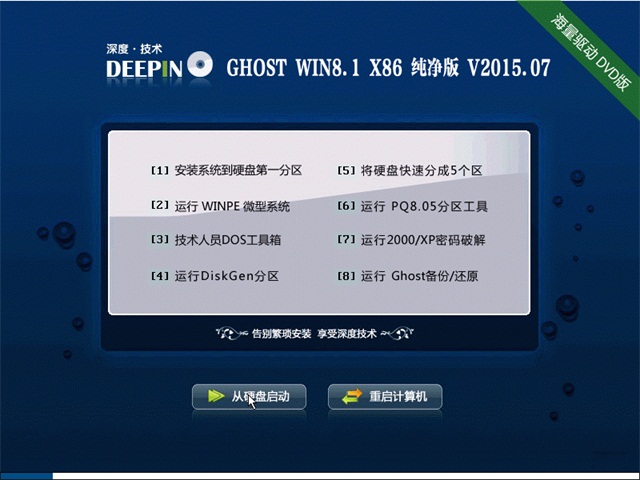 深度技术DEEPIN Ghost Win8.1 X86(32位)纯净版 v2015.07