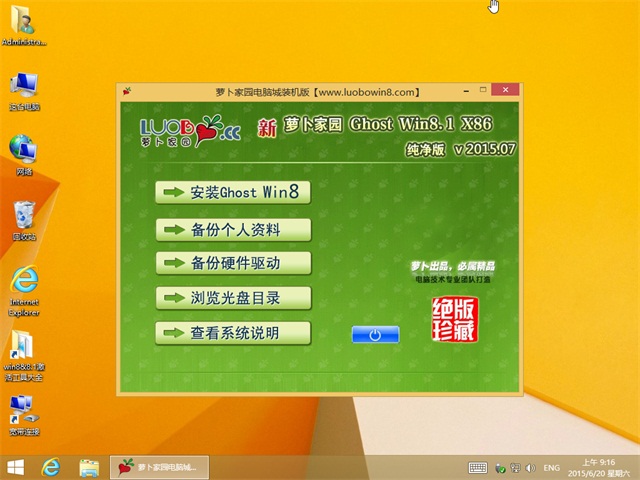 新萝卜家园 Ghost Win8.1 X86(32位)纯净版 v2015.07