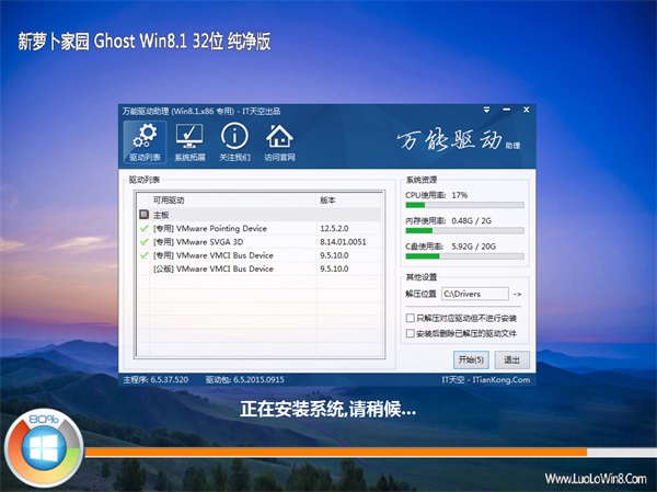 新萝卜家园Ghost Win8.1 32位 纯净版2016年06月受到用户的青睐,便是因为该系统具有更加稳定,更加人性化,更加安全的设置!集成了自2016年流行的各种硬件驱动,首次进入系统即全部硬件已安装完毕。通过数台不同硬件型号计算机测试安装均无蓝屏现象,硬件完美驱动,系统经过优化,启动服务经过仔细筛选,确保优化的同时保证系统的稳定内存消耗低。实用,反应迅速。在不影响大多数软件和硬件运行的前提下,已经尽可能关闭非必要服务,未经数字签名的驱动可以免去人工确认,使这些驱动在进桌面之前就能自动安装好!