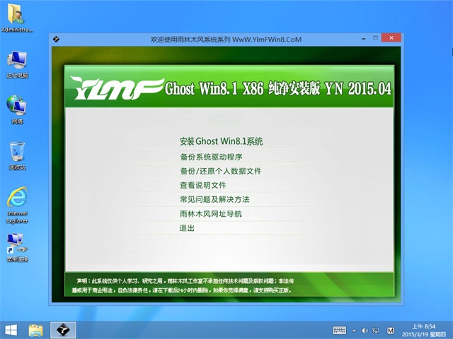 雨林木风 Ghost Win8.1 32位 纯净安装版 2015.04