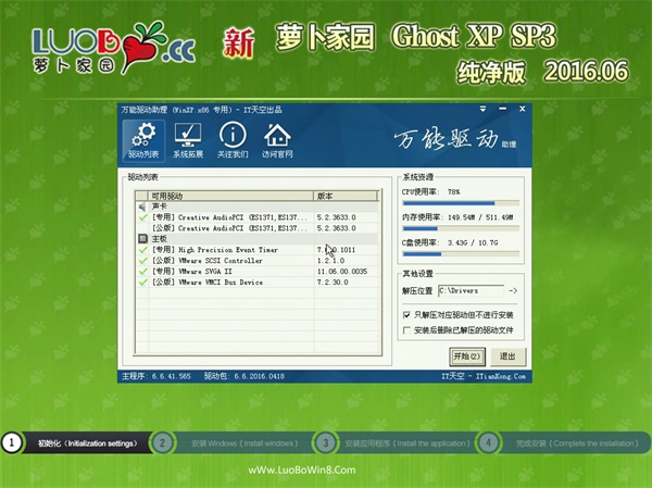 - 集成常见硬件驱动,智能识别+预解压技术,绝大多数硬件可以快速自动安装相应的驱动。