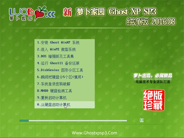 新萝卜家园 GHOST XP SP3 纯净版 2016.08