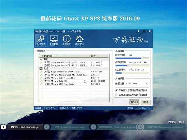 番茄花园XP系统纯净版集成常见硬件驱动,智能识别+预解压技术,绝大多数硬件可以快速自动安装相应的驱动。