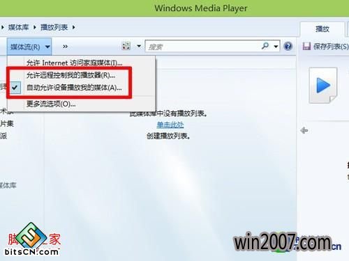 好了,最后部分,已经在前文所提供的基础前提保证下,进入到没有线影音打造时间。现在,大家可以返回windows Media Player播放器,切换到媒体库界面,选中媒体流功能,勾选两项“允许远程控制我的播放器”、“自动允许设备播放我的媒体”。
