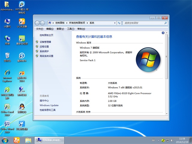 大地系统 GHOST WIN7 SP1 X86 (32位) 快速装机特别版 V2015.01